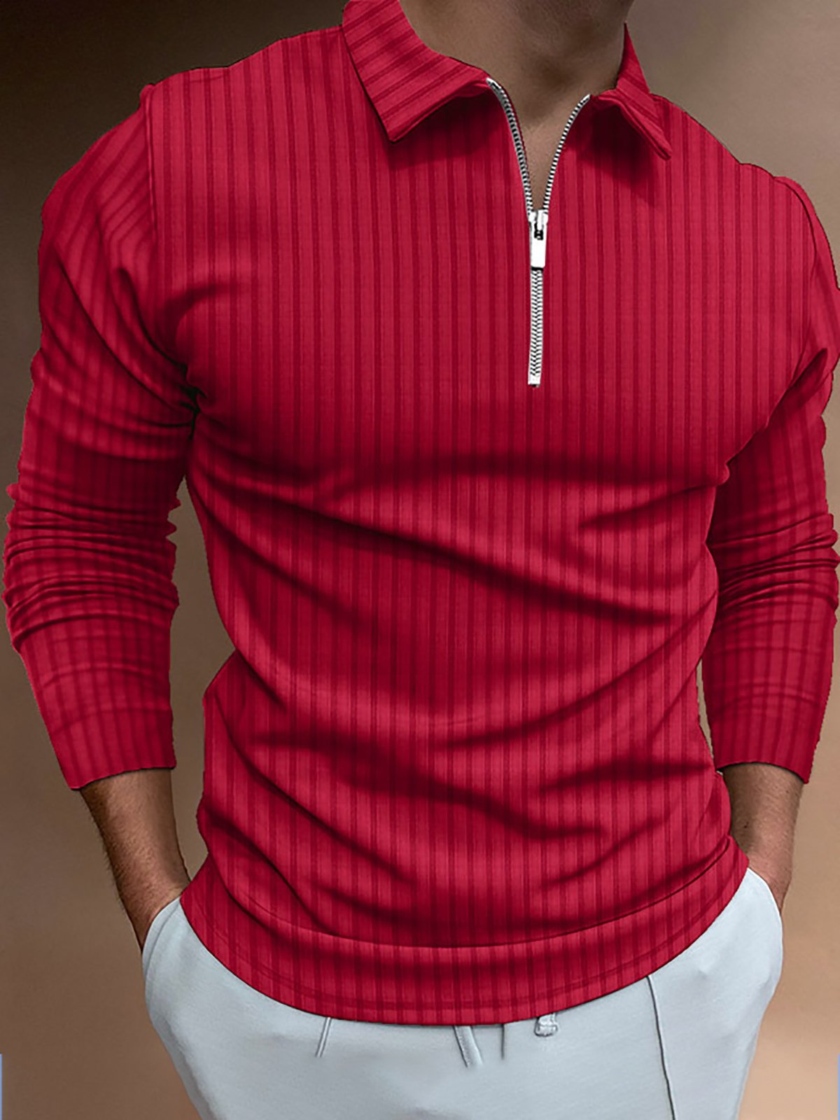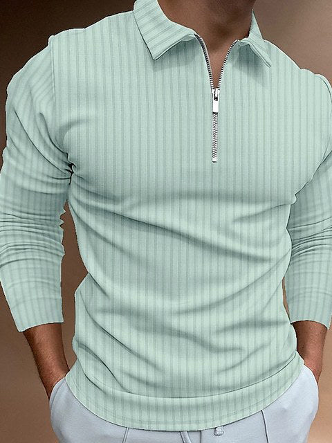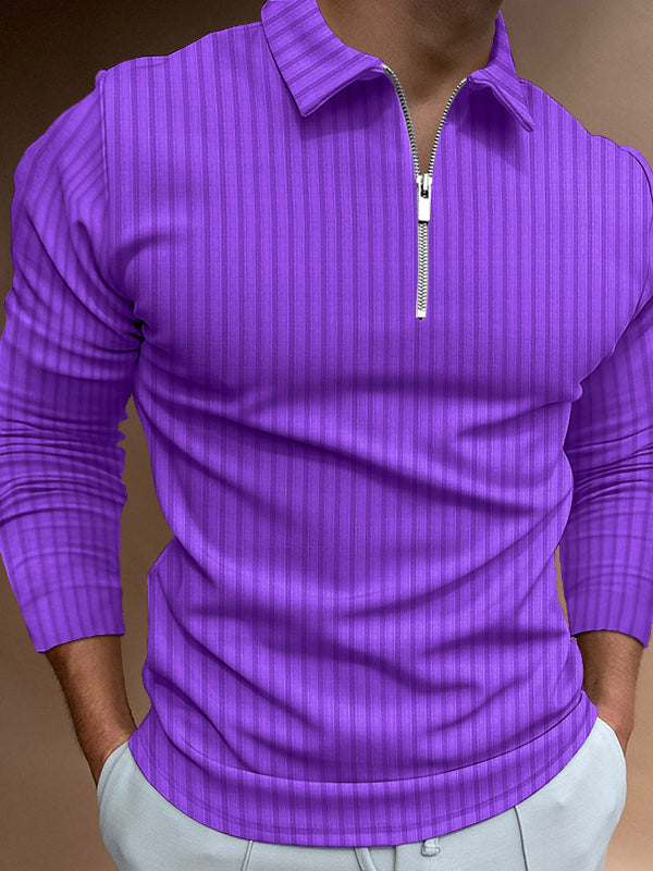 Men's Zip Stripe Long Sleeve Polo Shirt